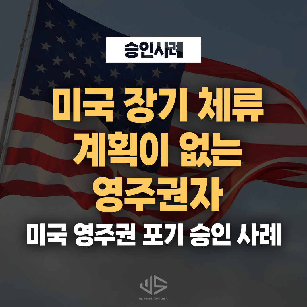 | [US 이민법인] 해외 장기 체류 후 영주권 포기 진행 ㅣ 미국 영주권 포기 승인 사례 (1) | 2025.06.23 |