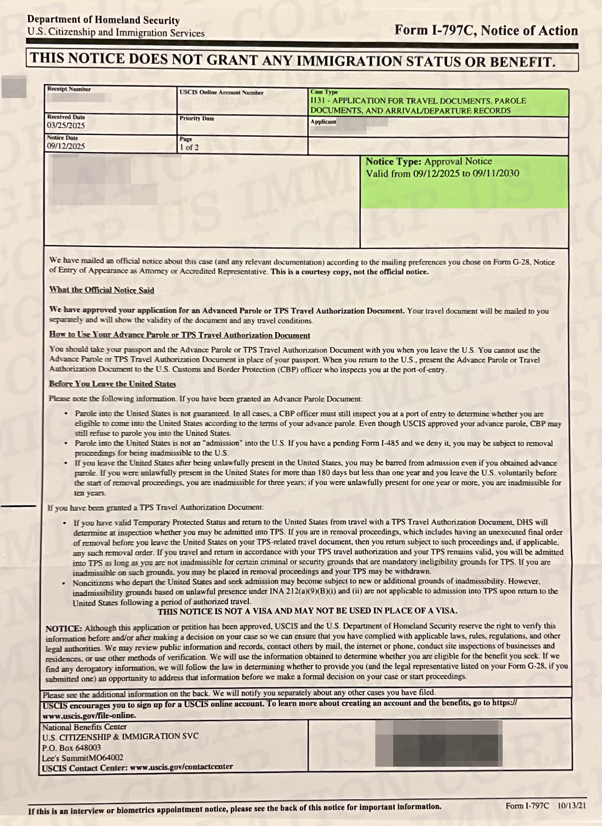 [US 이민법인] 신분조정(AOS) 진행 중 여행허가서(Advance Parole) 승인 사례 ㅣ 8개월만에 승인