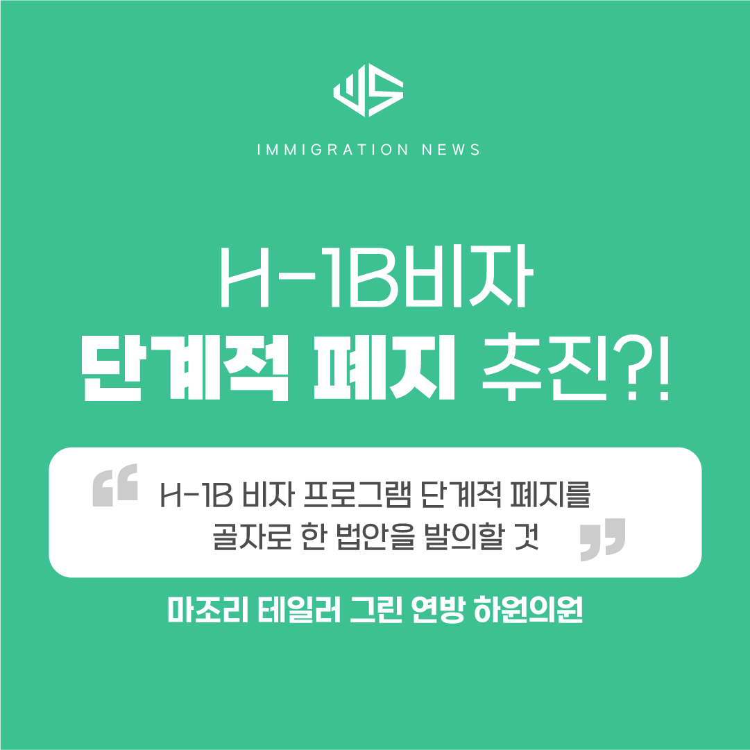 전문직 취업비자(H-1B)를 폐지하는 내용의 법안이 연방 하원에 곧 상정될 전망이다. 마조리 테일러 그린(공화·조지아 14지구) 연방 하원의원은 지난 13일 자신의 엑스(X)