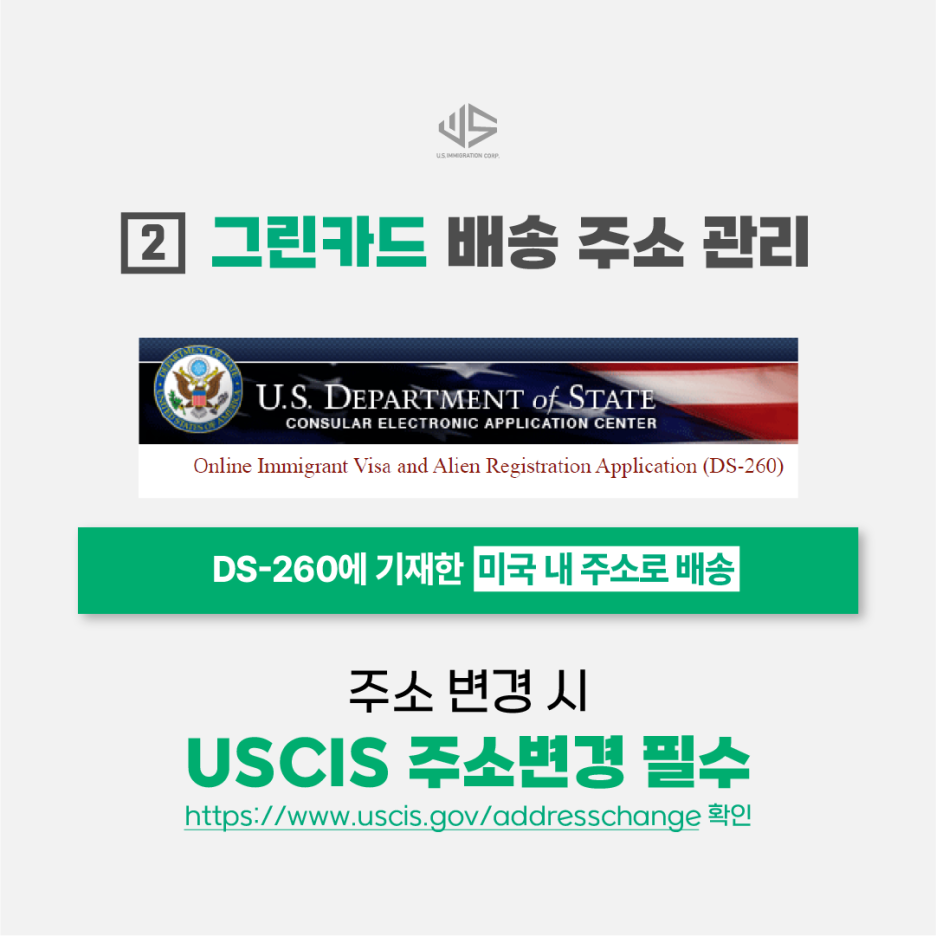 그린카드는 DS-260에 기재한 미국 내 주소로 배송됩니다.