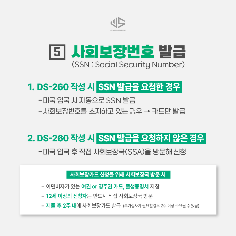 미국 입국 후에는 영주권자가 되므로 사회보장번호가 필요합니다.